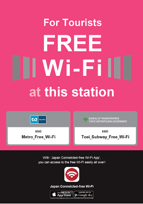去年底,日本東京都營公車 (Toei Bus) 推出公車乘客在車上上網的都 1 線,並且已經在今年 3 月讓這項服務普及到全部的公車路線,而從 2014 年 12 月 1 日下個月開始,日本東京地鐵 (Metro) 和都營地下鐵 (Toei Subway) 共計 143 個車站也將加入提供觀光客 Free WI-FI #免費上網 服務的場所。